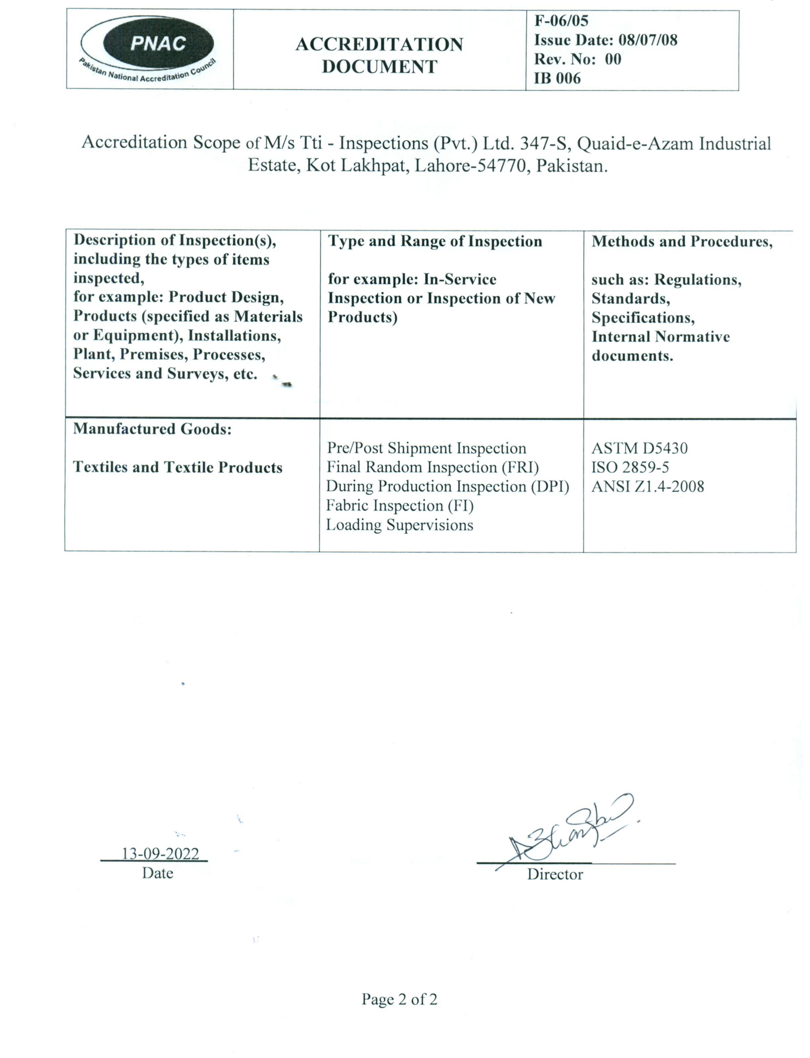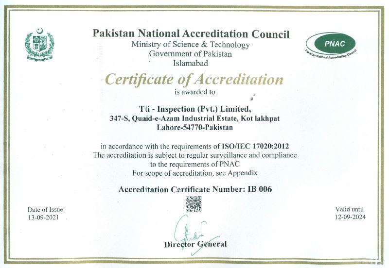 Tti-Inspections( Pvt.) Ltd has a Globally recognized and endorsed ISO/IEC 17020 Accreditation which is audited and controlled by PNAC in a mutual recognition arrangement by ILAC/ APLAC.